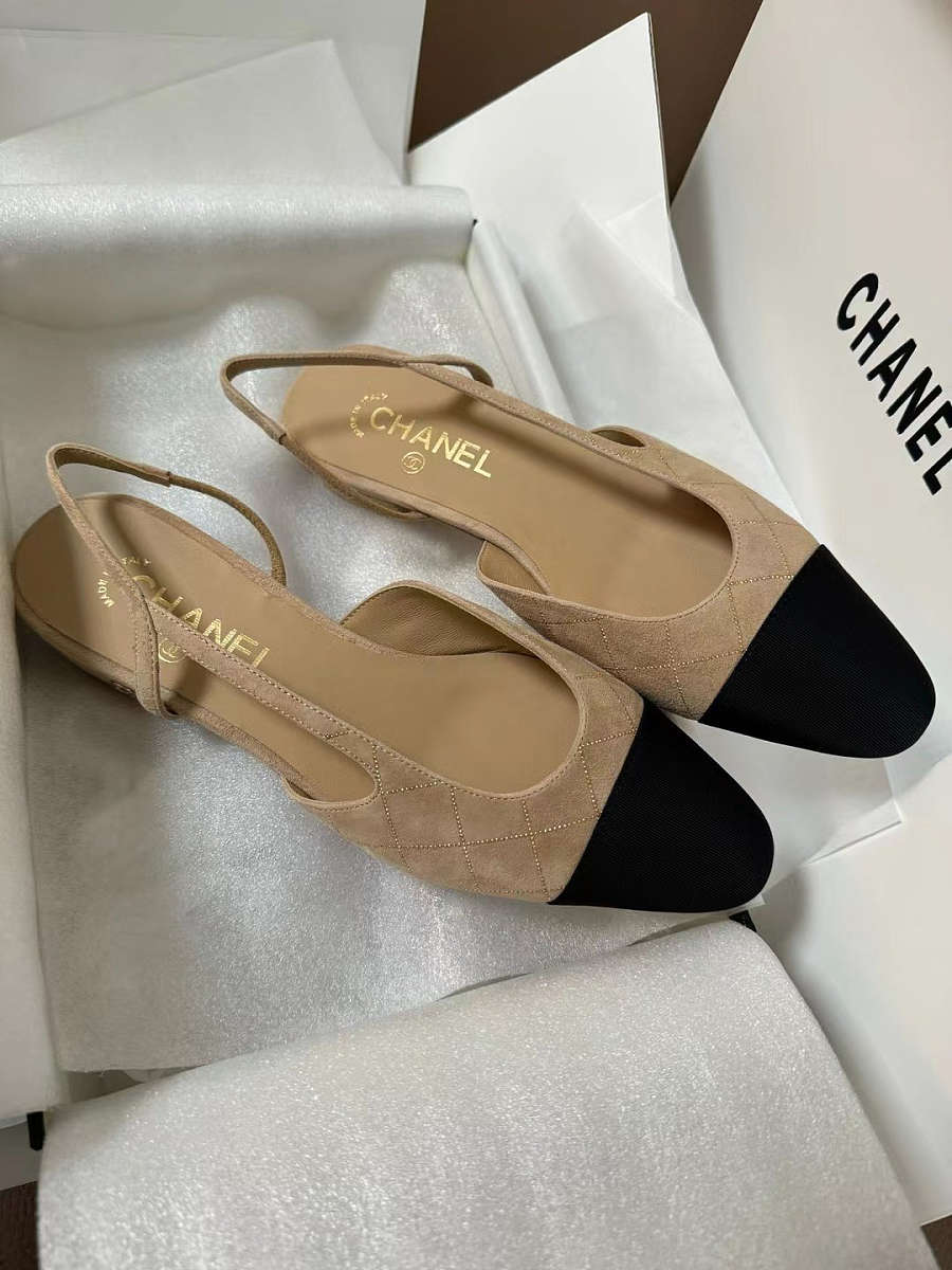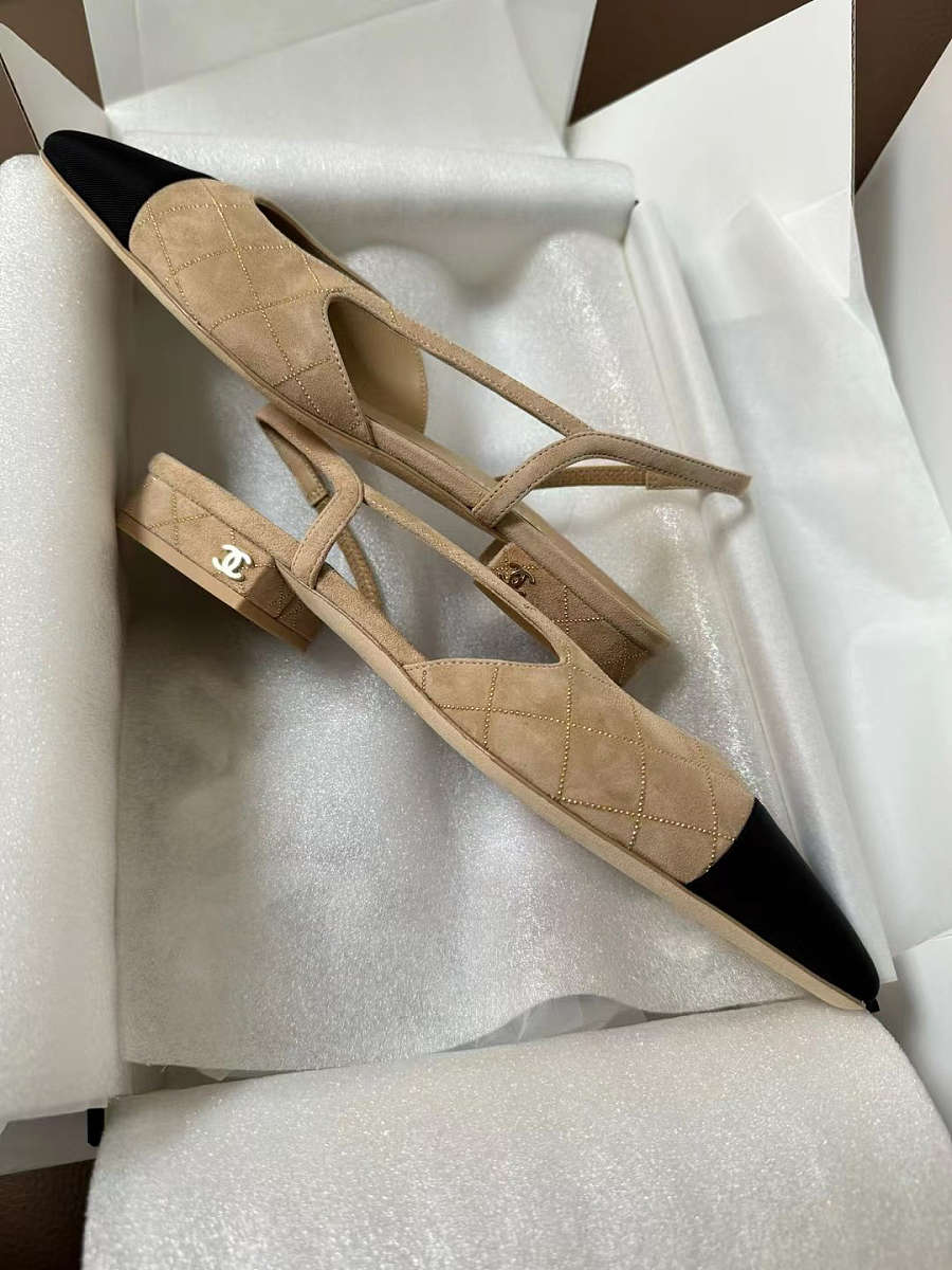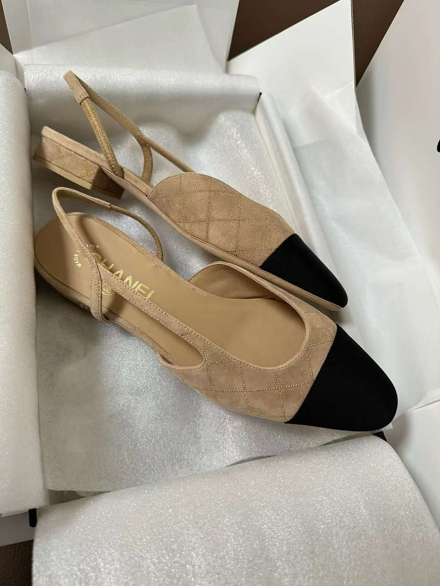 An icon of timeless Parisian elegance, the Chanel Beige & Black Slingback Pumps feature quilted suede with a contrasting black toe cap. Designed with a flattering slingback strap and sleek silhouette, these pumps are the ultimate wardrobe classic for day-to-night sophistication.