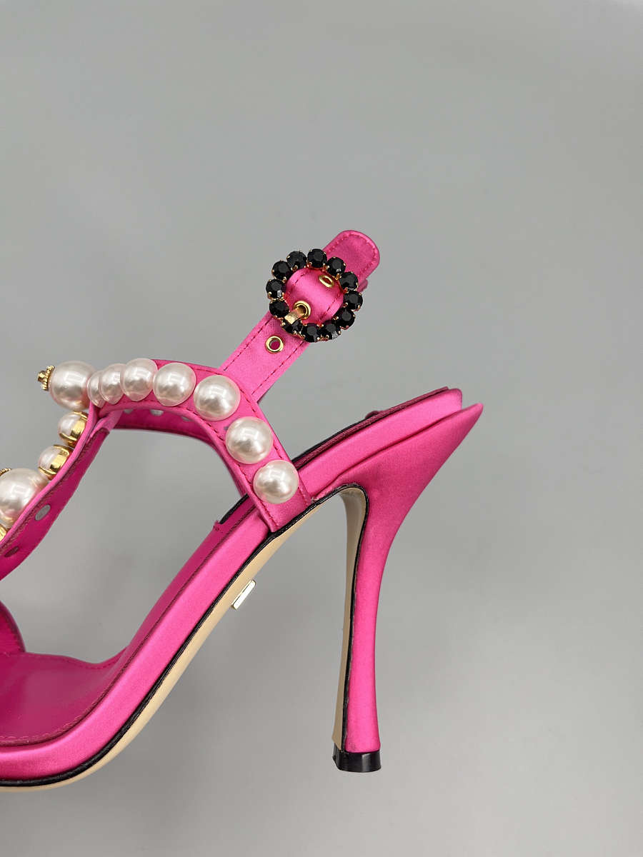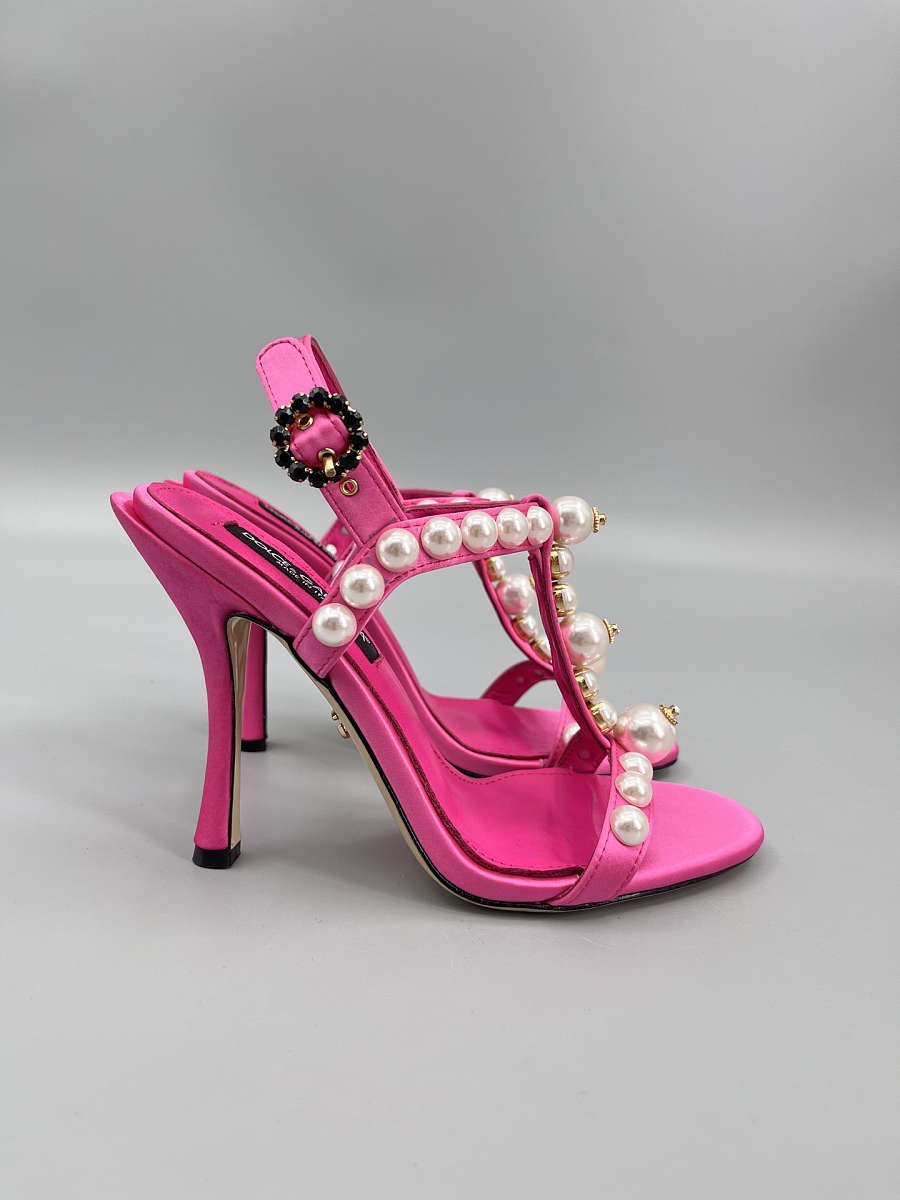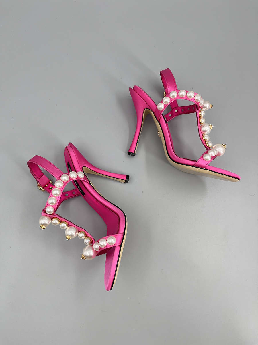 The Dolce & Gabbana Bejeweled Satin Sandals in pink bring glamour to every step. Designed in lustrous satin with crystal embellishments, this feminine silhouette combines luxury craftsmanship with statement sparkle — perfect for evening wear and special occasions.