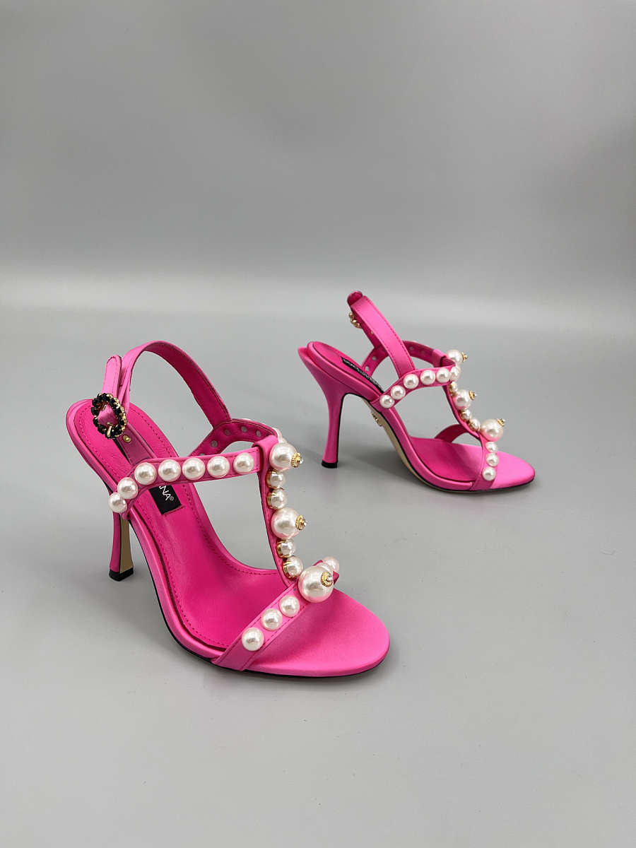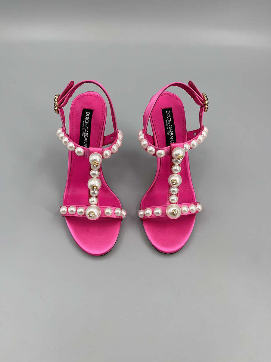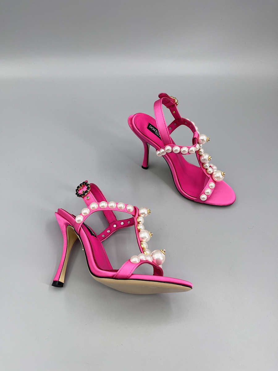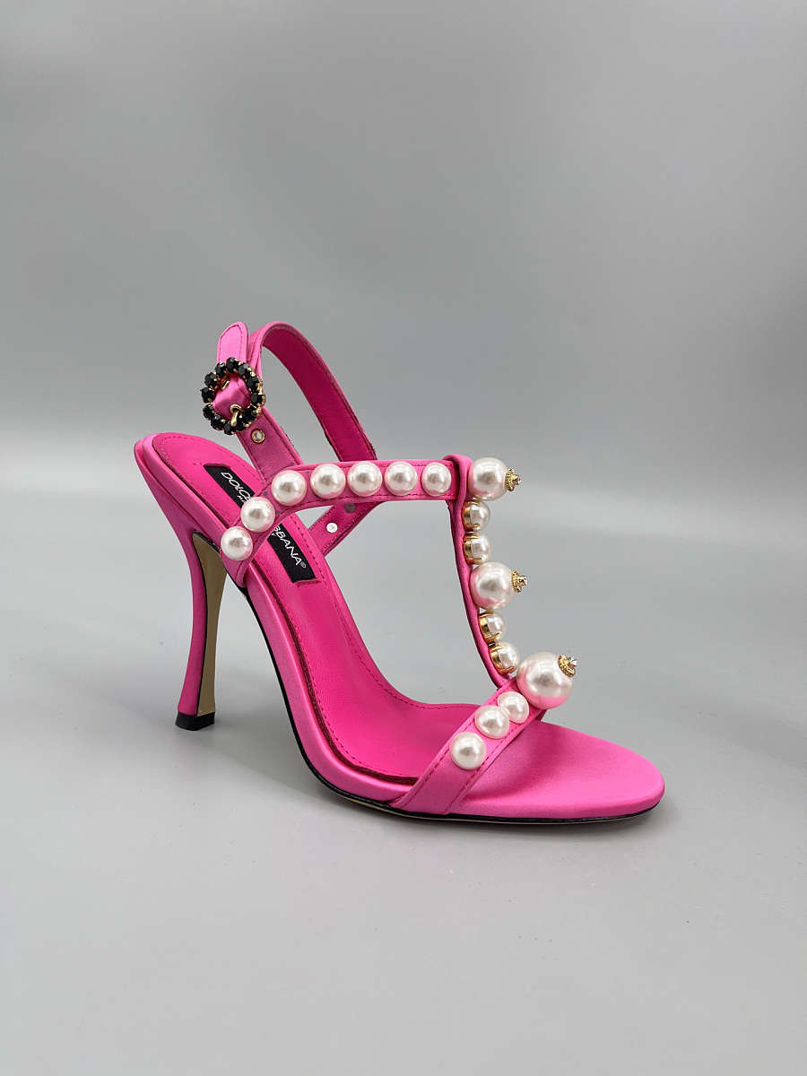 The Dolce & Gabbana Bejeweled Satin Sandals in pink bring glamour to every step. Designed in lustrous satin with crystal embellishments, this feminine silhouette combines luxury craftsmanship with statement sparkle — perfect for evening wear and special occasions.