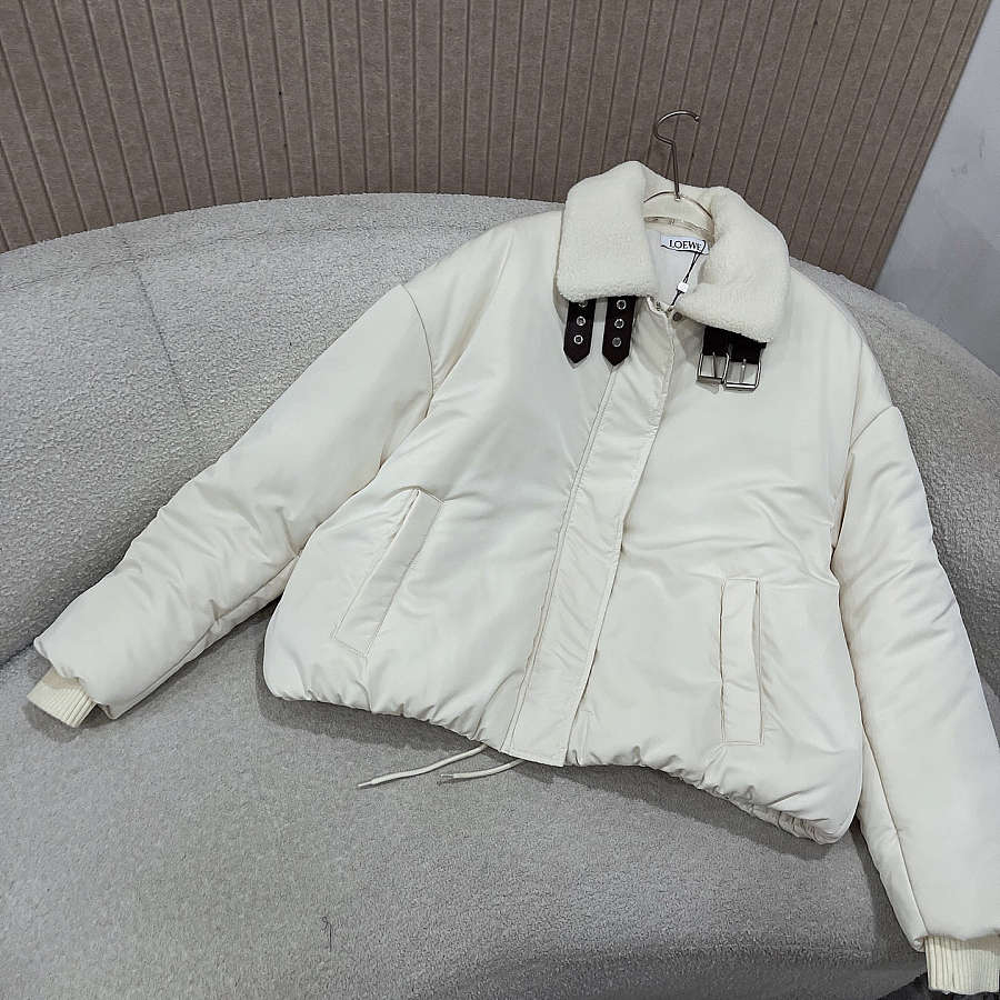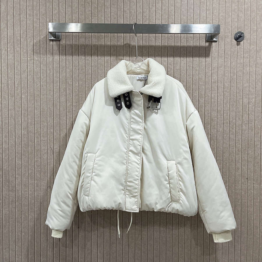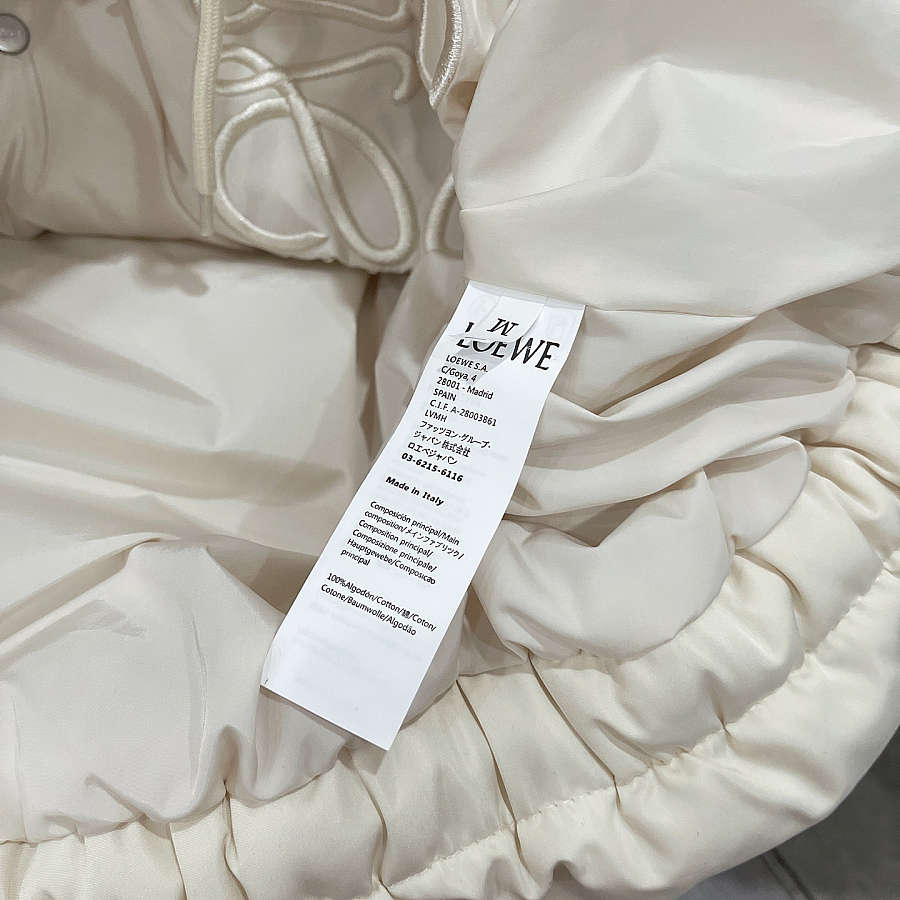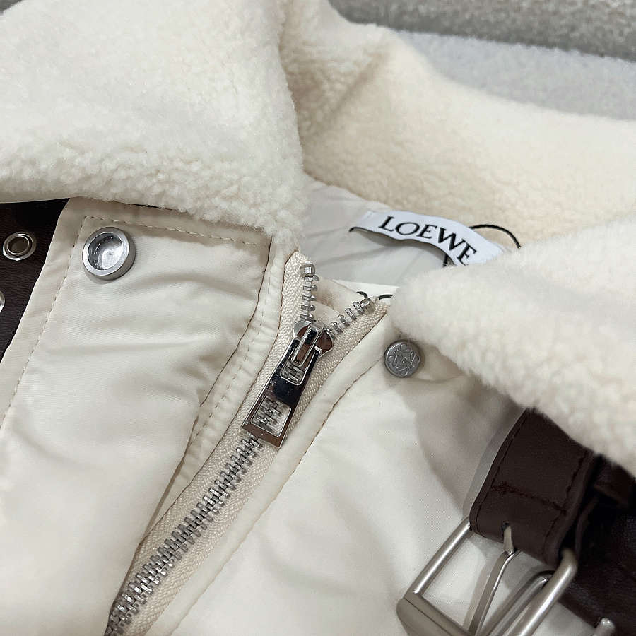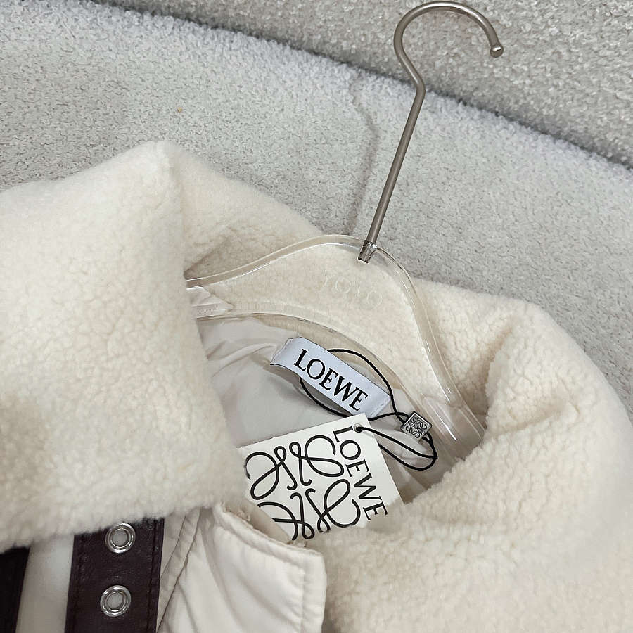 Crafted from a durable cotton-blend shell , it features soft shearling trim for warmth and texture, offering both practicality and sophistication. The minimalist silhouette is accented with LOEWE's subtle branding , creating an understated yet elegant aesthetic that transitions effortlessly from casual to elevated looks.