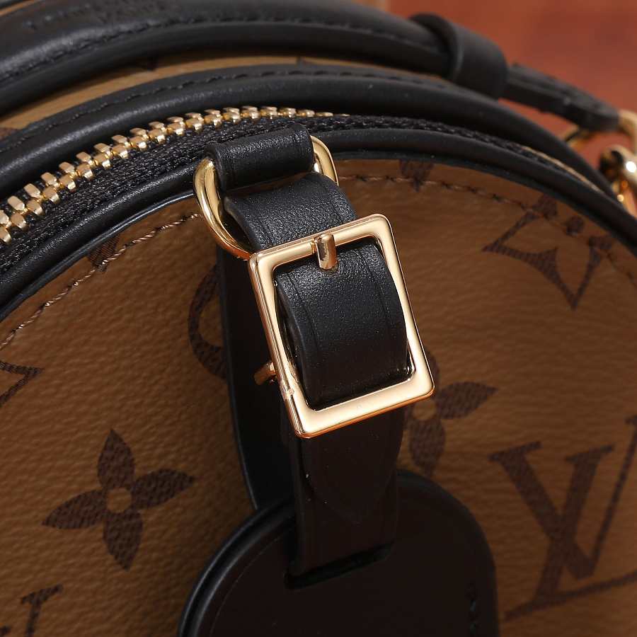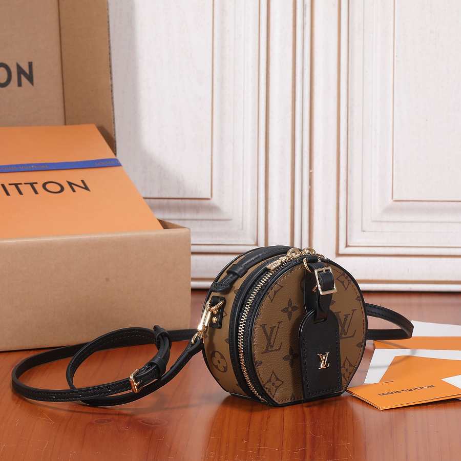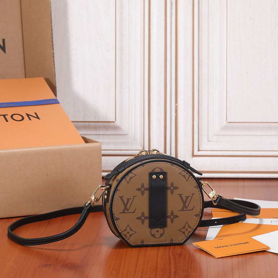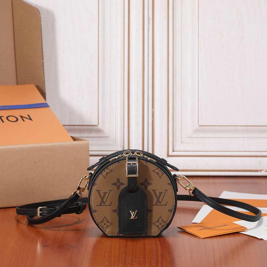 The Louis Vuitton Mini Boite Chapeau in Monogram Reverse Canvas Black reinterprets the iconic hatbox into a chic, compact bag. With elegant black leather trim, gold-tone hardware, and versatile carry options, it’s a timeless statement piece for day-to-night style.